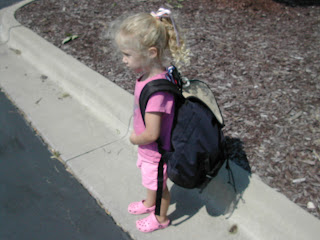 Hannah finally started to school yesterday. Since Caleb started to school (2.5 weeks ago), Hannah has been asking me every morning if she was also going to school and I had to keep telling her "No, not today". Needless to say, she was so excited to put on her backpack, pack her lunchbox and go to school.